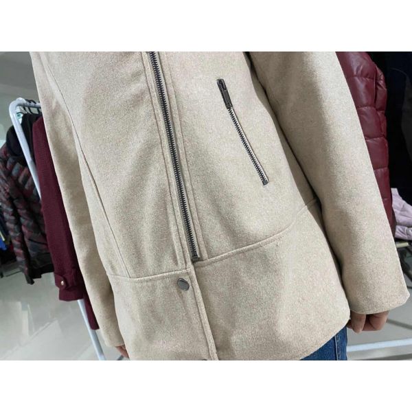 Ladies Melton Jacket / Women'S Zipper Jacket / Beige Color Metal Zipper Images |